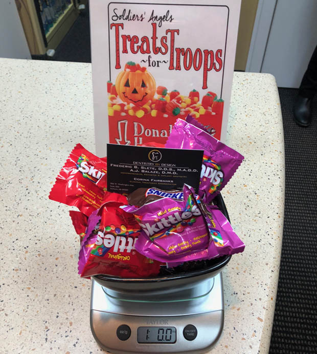 Keep Dentistry by Design in mind after next years spooky season. Bring in your leftover sweet treats and help us support our troops from afar, anyway we can.